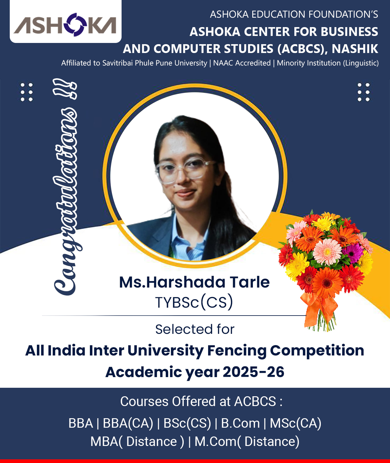 ACBCS helped me to enhance my personality and confidence. College provides a holistic environment where students can develop their overall personality.